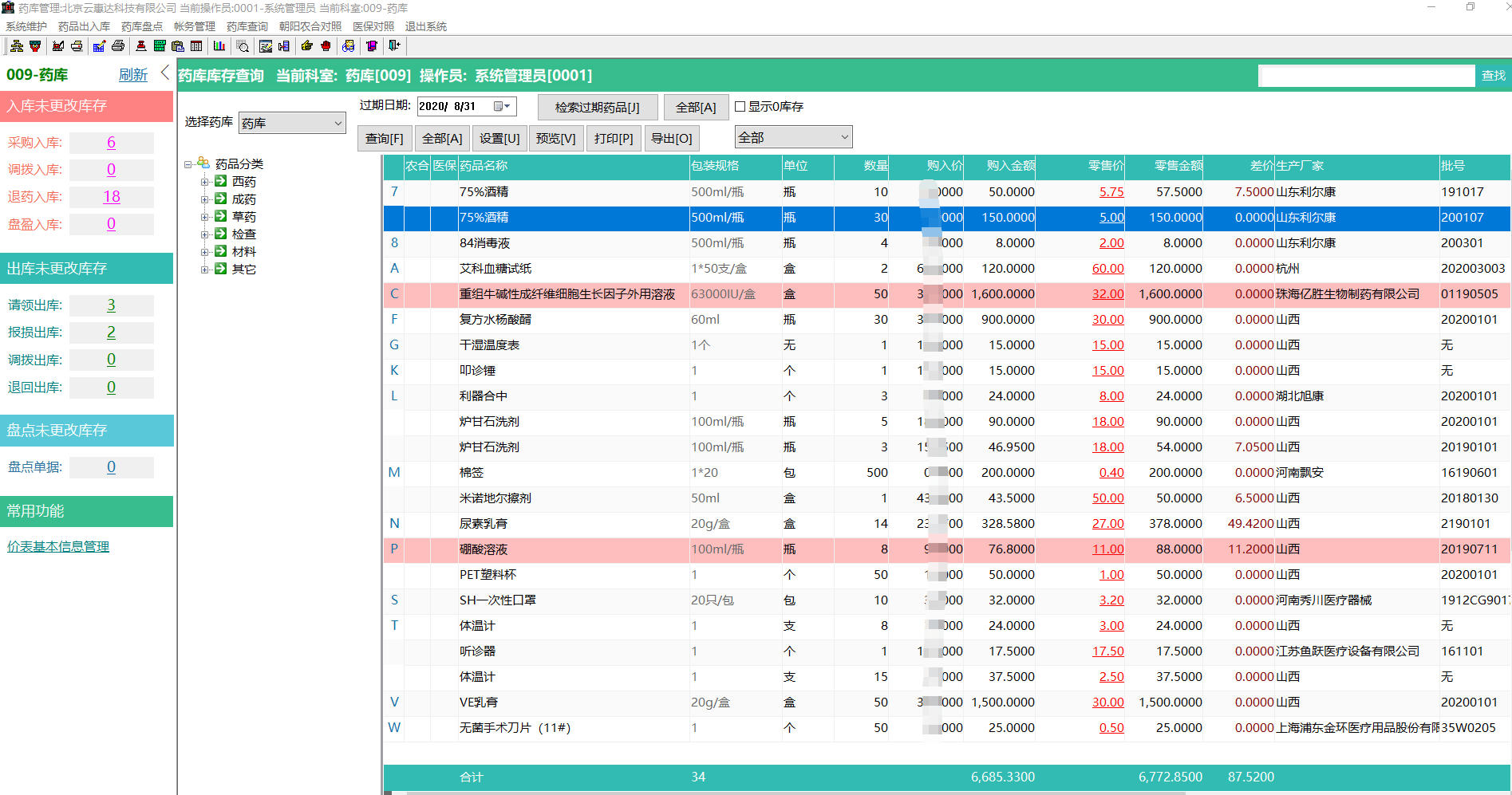 藥庫管理系統(tǒng),出入庫管理及庫存盤點、查詢、庫存預警等;可配置多個藥庫